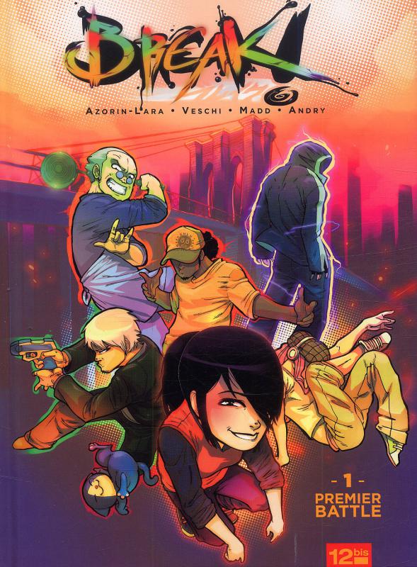 Amateurs de danse et de musique contemporaine, Break est une nouvelle série qui risque de vous faire remuer le popotin tout seul. L’idée centrale évoque le principe que la danse hip hop est un affrontement millénaire où la magie a une place importante… Le concept de Break fut d’abord destiné à l’animation, mais par divers concours de circonstances, le titre arrive aujourd’hui en bande dessinée. Scénarisés par Josselin Azorin-Lara et Eric Veschi, l’histoire se focalise sur Léa, une adolescente qui rencontre Malik et s’intéresse à son univers de la danse urbaine. Le récit est plutôt agréable, ponctué de flashbacks mettant en scène un personnage mystérieux qui ne sert néanmoins pas vraiment l’histoire (pour le moment ?). Ces séquences se placent assez maladroitement et viennent casser le rythme de la narration. Dommage, car visuellement Break est assez réussi. Madd montre des influences mangas parfois évidentes (les déformations de visage), suffisamment digérées pour que celle-ci servent bien le titre. Malgré quelques petits défauts, Break demeure une lecture agréable…