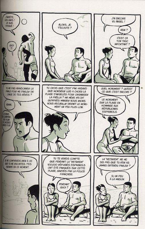 Paco Roca Fait partie des auteurs complets qui ont le vent en poupe, ces dernières années. Avec Rides et ses Rues de sable, il a montré qu'avec un trait simple et efficace, on pouvait proposer des récits passionnants. Avec L'ange de la retirada, le dessinateur ibérique ne s'est occupé que de la partie visuelle, laissant le soin du scénario à Serguei Dounovetz. L'histoire se concentre autour de Victoria, une adolescente de 17 ans qui est fière de ses racines espagnoles et aimerait en acquérir la nationalité. En suivant les errances de cette jeune fille, les auteurs proposent de revisiter un fait historique : la retirada. La retirada est cet exode massif d'espagnols venus trouver travail et refuge en France afin d'échapper au régime de Franco. Le phénomène est habilement inséré dans le scénario, par le biais de l'apparition d'un personnage mystérieux. Malgré toute sa bonne volonté, Serguei Dounovetz ne parvient pas à véritablement captiver. Entre la recherche d'identité de l'héroïne et l'aspect historique du récit, cet ouvrage se révèle un peu bancal. On aurait apprécié que l'histoire soit mieux équilibrée et ne se contente pas que d’un cheminement assez classique. L'ange de la retirada aurait pu être un formidable récit socio-historique, il se contente d'être une simple démarche pleine de promesses.