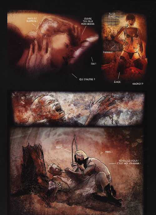 Les Processionnaires renferment deux choses uniques. Un scénario des plus étranges et un graphisme torturé à l’extrême. En deux tomes, le scénariste accumule les questions sur ce monde angoissant qu’il a créé. Et le lecteur a peu de réponses. Mais si on ne voit pas encore où il veut nous mener, lui a l’air de le savoir parfaitement ! Le tout porté par un dessin à la hauteur de l’histoire. Des couleurs très sombres, une utilisation de photos estompées et relevées au crayon, une jungle à la végétation agressive. Vous l’avez compris, si l’histoire rend anxieux, le dessin enfonce le clou et vous ressortez de la lecture de ces deux tomes fébrile. Totalement déroutant. Tellement même, que cette BD, par son ambiance visuelle très spéciale, est à réserver aux habitués du 9e art. Cependant, si vous êtes audacieux, vous ne serez pas déçus !