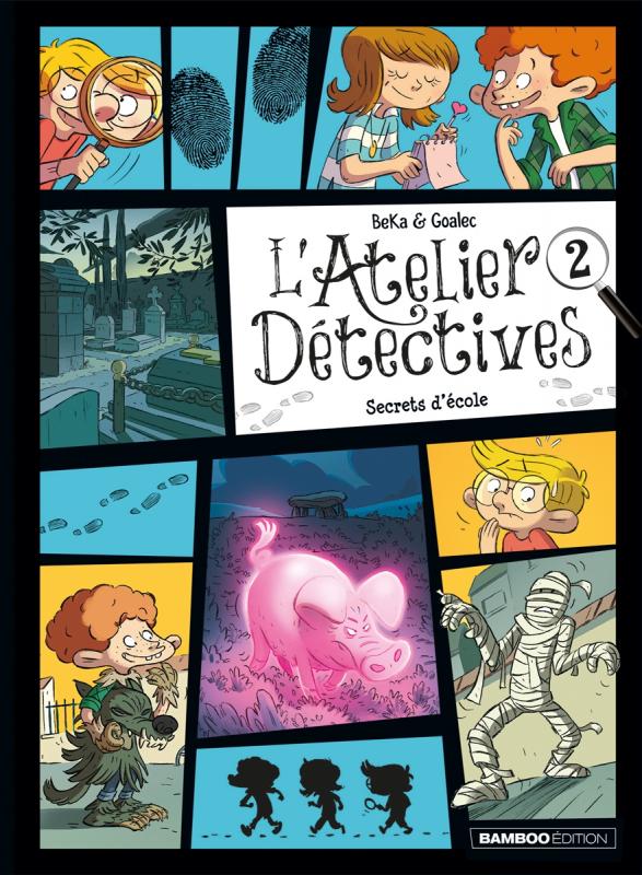 On ne change pas une formule qui gagne. Le duo Beka (Bertrand Escaich et Caroline Roque) continue de jouer sur les peurs et craintes des enfants pour nous offrir quatre nouvelles enquêtes menées par Lola, Isidore et Jules. Vampire, monstres d’Halloween, cochon de l’enfer phosphorescent et kidnapping sont au menu de ce second album. Le principe reste toujours le même : un événement surnaturel ou effrayant survient, puis l’attachant trio se lance dans des investigations qui vont leur faire découvrir que la vérité n’a finalement rien à voir avec les apparences. Pour un jeune public, ces historiettes toutes gentillettes sont donc parfaites. Néanmoins, on regrette (encore une fois) qu’il n’y ait aucune interactivité pour le lecteur. Cela aurait été tellement plus chouette si les jeunes lecteurs avait l’occasion de pouvoir résoudre eux-mêmes l’énigme, à l’instar de Mini’Olmes, Les enquêtes de Violette, Sherlock Latruffe ou encore La clé du mystère ou Docteur Enigmus dans un registre plus « adulte ». Pour ce qui est des graphismes, Sandrine Goalec (dessin) et Maëla Cosson (couleurs) reste dans les tons du tome précédent. C’est coloré, mignon, plein de bonnes ondes et de bonne humeur, pour un résultat qui plaira sans conteste au public cible. Une bonne série, mais à réserver aux tout jeunes lecteurs…