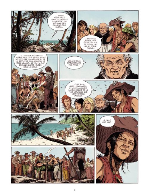 Le scénariste Stéphane Piatzszek et le dessinateur Tieko ne fléchissent pas d’un iota pour cette série d’aventures historiques et féministes. A mi-parcours de la trilogie annoncée, les trois héroïnes affichées en couverture du tome 1 se retrouvent mariées de force aux trois hommes présents en couverture du tome 2. De gauche à droite : Toussaint l’esclave affranchi, gentil mais ambitieux, offre respect et liberté à Louise ; Levasseur, gouverneur omnipotent et retors, a suffisamment d’éducation et de capacité de manipulation pour ne pas avoir besoin de violer Quitterie, afin de l’associer à ses manigances ; enfin, Yuma, indien natif et rustre, redoutable prédateur, se désintéresse totalement d’Apolline depuis qu’il l’a violée pour… lui faire un enfant. Bref, les trois femmes semblent tirer le meilleur parti possible de leurs situations individuelles, tandis que se déroule un conflit larvé entre espagnol, anglais et français, mais aussi entre protestants et catholiques, voire encore entre gouverneurs français de différentes îles. Quête de richesse, pouvoir politique et religieux, domination masculine, sont les redoutables composantes d’un climax explosif, qui devrait intervenir dans le 3ème et dernier opus. Les dialogues sont ciselés et le contexte admirablement documenté – notez que Piatzszek scénarise en parallèle une autre série historique située dans les Caraïbes, Le maître des îles. Tieko déroule quant à lui un dessin réaliste soigné, très justement mis en scène, décoré et découpé… A tel point que cette série n’est pas sans rappeler le cultissîme modèle du registre, Les passagers du vent.