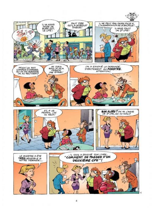 Gladys, la prof d’anglais, fait encore des siennes. Elle n’est jamais avare de remontrances et d’humiliations auprès de ses élèves. Quand elle rend ses notes d’intérro, elle ne peut s’empêcher de péter les plombs. Pourtant, l’hebdo des lycées est formel : « les enseignants ont une lourde responsabilité, ils représentent la République et, de ce fait, doivent, en toutes circonstances, avoir un comportement exemplaire ». Gladys ne voit pas d’un bon œil l’arrivée de Carol, une jeune étudiante écossaise, en stage. Elle va être son assistante pendant 6 mois. Les élèves sont heureux car elle est jolie. Gladys, un peu moins, car elle a un meilleur accent qu’elle ! La proviseure ne manque pas aussi de recadrer ses profs. Elle vient de voir le palmarès des lycées de la région : 78ème sur 80 ! Elle donne une punition à tous ses enseignants : copier 100 fois « je ne dois plus coller la honte à ma proviseure ». Heureusement, dans ce climat pesant, Éric le prof d’EPS ne manque pas d’apporter un peu de fraîcheur ! Il entraîne Antoine Polochon dans les repérages pour le cross Interlycées. Du côté des élèves, les cancres sont fidèles au poste, avec Thierry Boulard en tête et Martineau qui a toujours une excuse dans son sac quand il arrive en retard ou quand il a une mauvaise note.