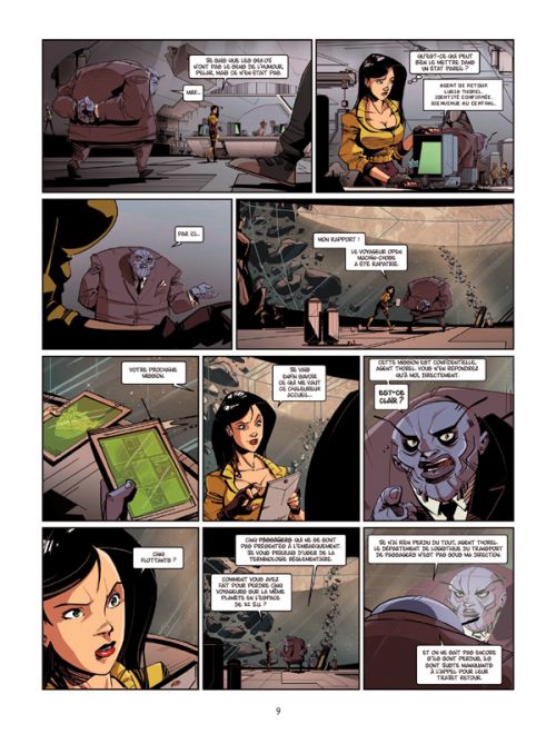 Avec Perdus en Translation, le tout premier tome de cette nouvelle série de SF, le scénariste Dominique Latil a décidé de mettre sur pied un space opéra à la sauce Far-West assez intéressant. En effet, l’homme a su (re)prendre à son compte de nombreux éléments issus de la science-fiction, pour les replacer au travers d’une enquête galactique bourrée d’action, d’humour et agencée à la manière d’un western haletant. En ce qui concerne la partie graphique, force est de constater que le travail de Romain Sordet est très propre. En effet, l’homme a opté pour des traits fins et dynamiques plutôt détaillés qui permettent de donner beaucoup de peps à l’ensemble. Qui plus est, l’univers développé par l’équipe créative oscille entre western, steampunk et space opéra, et il permet de mettre en avant une multitude de personnages graphiquement intéressants et ce, malgré des couleurs un poil ternes. En fin de comptes, ce premier volume de Teleportation Inc. est une agréable mise en bouche, qui met en avant une histoire plutôt bien ficelée avec son lot d’action et d’humour. Vivement le plat de résistance !