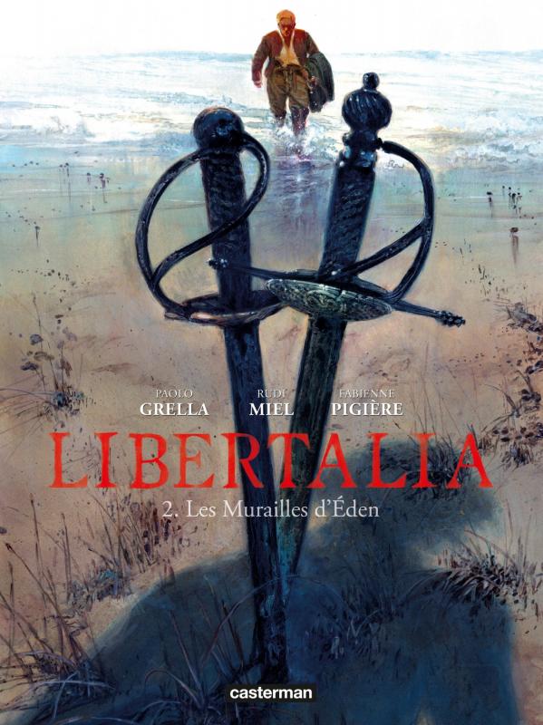 Libertalia a-t-elle vraiment existé ? Cette colonie libertaire de Madagascar, fondée par un gentilhomme provençal et un prêtre défroqué apparaît dans une encyclopédie du XVIIIème, qui serait en fait l’œuvre de Daniel Defoe, l’auteur de Robinson Crusoé… L’idée est belle, de toute manière, de ces pirates qui essaient de créer une société sans règles, basée sur la liberté et la solidarité. Mais bien entendu, les premiers problèmes arrivent : individualisme, triche, alcoolisme, violence envers les femmes, les penchants violents des hommes reprennent le dessus. Et puis, il y a le leadership, le pouvoir. Même si Misson et Caraccioli ont des idées généreuses, ils s’opposent, de plus en plus ouvertement, sur la manière. Misson est plus pragmatique, Caraccioli plus cérébral. Et puis le prêtre défroqué a dans l’idée de recréer une église sans tache dans leur petit paradis. Ce deuxième tome est mieux équilibré et plus efficace que le premier. Là où on avait un peu l’impression que le scénario avançait trop vite, on a désormais des caractères qui s’affrontent. Rudi Miel et Fabienne Pigière prennent le temps de nous offrir une montée dans l’adrénaline entre Misson et Caraccioli, qui se sont lancé comme des étudiants en goguette dans leur aventure, qu’ils prennent désormais très au sérieux. Les dessins de Pella sont toujours aussi efficaces et certaines planches sont vraiment magnifiques. Il offre un souffle qui transpire l’aventure et les rêves d’ailleurs. C’est au final une très belle suite, qui laisse un suspense insoutenable sur le dénouement du triptyque. Le lecteur attendra, la gorge sèche, la fin de cette belle aventure.