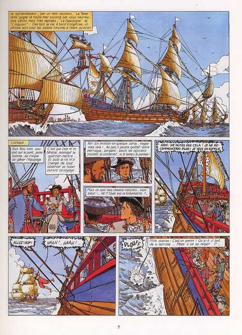 Jacques Martin a un peps incroyable ! A 83 ans, il se lance encore dans une nouvelle série historique dans la lignée classique des Alix, Lefranc, Jhen, Keos et Orion. Ce classicisme est quasi-anachronique, comparé à l’explosion actuelle de la BD moderne. Mais si le découpage traditionnel rebutera les plus habitués, Jacques Martin parvient à donner un réel souffle épique aux aventures de son nouveau personnage. De Versailles à la Nouvelle Orléans, il nous distille aventure, romance, pirates et tornades. Loïs fait oublier ce que les derniers Alix et Lefranc ont de désuet. Des mœurs aux costumes du XVIIe, en passant par les détails des bâtiments ou des caravelles, la reconstitution historique est excellente. Pour Olivier Pâques, jeune dessinateur au talent prometteur, qu’il doit être fastidieux de dessiner tous ces détails avec autant de rigueur ! Il se livre à un exercice graphique d’une grande précision et parfaitement documenté, en restant fidèle à la ligne fine du maître. Seules les couleurs gagneraient à plus de sobriété (ah les nuages violet à la planche 35 !).