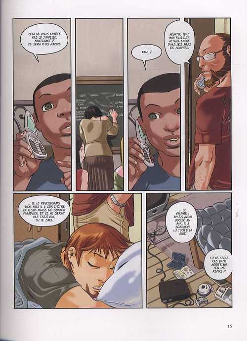 La couverture est parlante : cette nouvelle série bondissante cible essentiellement le créneau des djeunz, mais avec un savoir-faire relativement enthousiasmant. Les jeunes héros mènent en effet des vies de djeunz avec des préoccupations de djeunz (lycée, console vidéo, boîte de nuit, drague, dodo, piercing, tatouages), avec un focus particulier sur une pratique artistico-sportive à la mode : le « parkour » urbain (NDLA : on apprend plein de trucs sur wikipedia…). Graphiquement, ces séquences rythmées sont l’occasion pour l’auteur ibérique Man, de briller dans une gestion très vivante des mouvements et des cadrages, recherchés et superbement rendus. En bref, ça dépotent grave ! Entre l’intro et le final, Man ne relâche pas pour autant son application. Il n’hésite pas à recourir aux macro-plans, souvent sur de grandes cases, au graphisme léché, complétées par une colorisation comme veloutée… dans la même veine esthétique inspirée de manga que Mia, la précédente œuvre éditée par Dargaud. Pas grand-chose à relever pour l’instant côté scénario : il nous présente des persos cool et sympa, qui se dragouillent gentiment, tout en livrant les prémices d’une affaire plus violente (le tueur à la machette), que nous serons ravis de suivre au cours des 4 prochains volumes prévus…