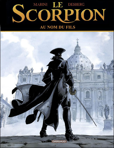 Quel coup patte de génie cet Enrico Marini… A croire que si l’on remplaçait son crayon ou son pinceau par une bonne vieille rapière, il tiendrait la dragée haute au personnage qu’il anime avec un incontestable brio depuis 12 ans : notre fameux Scorpion. Pour ne rien cacher, c’est une nouvelle fois cette maestria graphique qui porte avec panache le 10éme opus de la série. Tout y est joliment pesé pour amadouer l’œil. Qu’il s’agisse des cadrages aériens ou de la virevolte des scènes d’action. Voire encore de la fabuleuse colorisation ou des décors subtilement travaillés. Bref, un véritable festival s’accordant diablement au tempo du scénario. Car si ce dernier pêche un brin dans un « tourne en rond » lassant, on ne peut pas reprocher à l’ami Stephen Desberg de ne pas savoir manier la structure de son récit ou ses effets, pour nous happer littéralement. D’accord, on s’agace d’être suspendu à ce problème de paternité et ses rebondissements. Certes on s’impatiente de voir la confrontation Trebaldi / Scorpion s’éterniser. Ou encore cette valse hésitation des sentiments de notre arthropode préféré (Ansea, Marie-Ange, Mejaï…). Qui plus est, au détriment de cette veine épique et aventurière qui semble pouvoir aller comme un gant à la série. Et pourtant, on avale ici encore le récit avec boulimie, jamais ralentis par ces quelques épines et parfaitement conscients des limites du scénario… Mais totalement conquis. A vous de prendre en main ce 10éme épisode, en possession de quelques nouvelles clefs : un nom définitif (?) pour le paternel du Scorpion ; un pape apparemment gagné par la folie ; une union programmée de richissimes familles et des compagnons bien mal-en-point. Le tout étant ponctué par un rebondissement prompt à faire s’animer la scène romaine une prochaine fois...