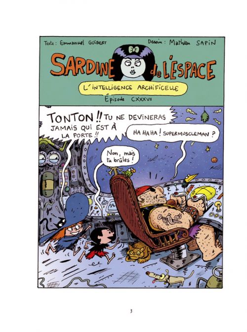 Créée en 2000 par Emmanuel Guibert et Joan Sfar, Sardine de l’Espace n’a pas souffert du remplacement de son dessinateur par Mathieu Sapin, il y a plus de dix ans. Sardine est toujours drôle, rythmé et agréable à lire. Les jeux de mots sont nombreux (Archificelle, Fesse-Time, les Lologrammes ou Espresso), les références riantes (Enola Triste la bombe à néant, en référence à l’Enola Gay, l’avion qui a lâché la bombe sur Hiroshima), et surtout les personnages hauts en couleurs. Les héros récurrents sont sympathiques. Les pirates de l’Hectormalo forment une belle famille et les nouvelles méchantes sont tordantes, puisque les trois bombes sont incarnées par des adolescentes archétypales. C’est dynamique, drôle et bon enfant, les adultes liront ça très vite et les enfants le dévoreront aussi.