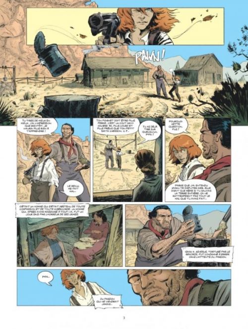 Dans l'Ouest américain impitoyable des années 1860, six individus aux destins brisés – Kid, le garçon borgne, Elsie, l'ex-prostituée, Quintus, le déserteur hanté, Royal, l'esclave en fuite, Roxanne dit Sœur Marie-Carmel, la nonne déchue, et Tchitchi, l'Indien renégat – se lient pour une quête périlleuse : trouver la fameuse mine d'or de Kid. Philippe Pelaez tisse une intrigue captivante où l'exploration des personnalités complexes des protagonistes prend une place centrale. Leur périple, semé d'embûches et de dangers, les confronte non seulement aux éléments hostiles et aux ennemis impitoyables, mais aussi à leurs propres démons intérieurs. Des flashbacks habilement distillés révèlent les traumatismes qui hantent chaque personnage, éclairant leurs motivations et leur quête de rédemption. L'auteur aborde avec profondeur des thèmes universels comme l'amitié, le courage, la cupidité et la violence, offrant une réflexion sur la condition humaine. Le récit rythmé par des rebondissements et des révélations inattendues maintient le lecteur en haleine jusqu'à la dernière page. Le trait semi-réaliste et expressif de Javier Sanchez Casado restitue l'atmosphère âpre de l'Ouest américain et restitue parfaitement les émotions des personnages. Le second opus de cette série est une aventure humaine captivante, au cours de laquelle des destins brisés se confrontent à la violence et à la cupidité, mais aussi à l'espoir et à la possibilité d'une rédemption.
