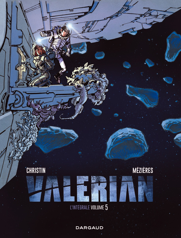 L'intégrale 5 de Valerian réunit les tomes 13 à 15, soit toute la période du début des années 90. La série s'affine de plus en plus, l'univers de science fiction explose de mille feux. On pense inévitablement à Star Wars tant les mondes sont superbes et les créatures complètement extravagantes. Les voyages nous entraînent dans des lieux insolites : des bars enfumés, des déserts arides et westerniens, des buildings immenses et étroits, des bas fonds sordides et sombres. L'exotisme se poursuit avec des personnages étonnants, comme Brittbrit, l'artiste transformiste, le Schniarf qui crache des projectiles mortels ou encore le transmuteur qui démultiplie tout ce qu'il avale ! Le plus fascinant reste l'arrivée spectaculaire des extraterrestres de Néferfalen, de superbes personnages aux costumes élégants et dorés et à la prestance noble. Chaque tome est remarquable et a une identité propre tant l'imagination de Pierre Christin est variée. Le premier est une véritable enquête policière pour coincer un immonde criminel intergalactique. Le deuxième est une incroyable plongée dans le monde du cirque et du spectacle, version science fiction. Le dernier enfin s'avère une épopée pleine d'actions et de courses-poursuites. La science fiction est aussi pleine d'enseignements et encore étonnamment moderne, puisque certains événements trouvent des échos à notre actualité : le terrorisme en Lybie, les difficultés de l'immigration... Le scénariste n'est pas seulement un formidable conteur puisqu'il se paie le luxe de glisser des références bien connues. Le dernier tome est une réécriture futuriste de Dante et de ses fameux cercles des enfers. Le bouillant Shark est un mélange de Tintin avec sa houppe et de Gavroche avec son caractère révolté. On reconnaîtra également ce qui a inspiré Le cinquième élément avec cette spectaculaire course-poursuite des limouzingues. Cette grande série est aussi superbement illustrée, le trait de Mezieres est un superbe mélange de ligne claire et de détails très fouillés dans les décors façon Jean Giraud. Les annexes qui révèlent quelques anecdotes complètent joliment une intégrale indispensable.