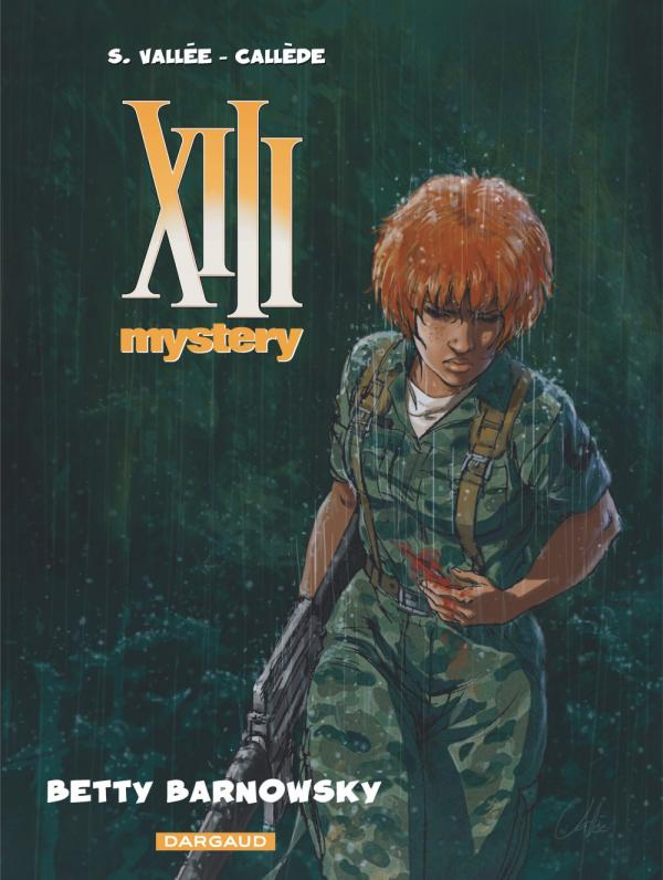 Pour cette septième petite sucrerie directement piochée dans la bonbonnière lucrative de la célèbre saga, c’est l’un des personnages secondaires les plus récurrents de la série-mère (une dizaine d’apparitions en 22 tomes) qui s’offre son petit coup de projo : la « poisseuse » Betty Barnowsky au minois made in Shirley MacLaine et au courage proportionnel au pétrin dans lequel son destin s’amuse à l’engluer. Apparue dans SPADS (tome 4) aux cotés de notre célèbre tatoué, confirmée par Rouge Total (tome 5), cette attachante sergent du corps d’élite du Général Carrington jouera un rôle non négligeable dans chacun des épisodes auquel elle participera… Le choix scénaristique opéré par Joël Callède nous plonge aux cotés de cette sympathique rousse juste après les événements décrits dans Rouge Total : remise de décoration, mauvaise (ou bonne ?) nouvelle, envie de quitter l’armée et proposition de mission périlleuse au cœur de la jungle du San Miguel par ce diable de général fumeur de gros barreaux de chaises. De prime abord, ce récit purement dédié à l’action (via les aléas carabinés de ladite mission), son lot de petites surprises (parfois capilotractées), ses rebondissements (peut-être un peu convenus) émarge dans la catégorie classique de chez classique, sans forcément relever du grand intérêt. Pour autant, Callède bâtit un opus intelligent, habile dans l’art de superposer à sa trame aventureuse peu originale l’épaisseur psychologique attendue, ainsi que les liens avec les entrelacs de la série-mère souhaités. Pas facile, pourtant, car en s’imposant de ne pas jouer la partition préquelle (donc un récit pré tome 4), la tâche était plus ardue. Mission néanmoins remplie. Car bien qu’occupée dans sa cambrousse luxuriante et humide, on apprend beaucoup du passé de Barnowsky, de ses blessures, de ses sentiments, de ses liens avec XIII, avec Carrington ou de l’amorce de son futur avec De Préseau. Au final, donc, un album plutôt intéressant, pour lequel les propensions particulièrement touchantes du personnage choisie sont on ne peut mieux respectées (voire encore plus mises en lumières). Rien à redire du travail de Sylvain Vallée qui réussit le pari de se fondre dans l’univers XIII tout en gardant sa patte. En particulier en proposant une nouvelle fois une jolie palette de cadrages...