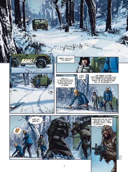 Dakota et Mismy se sont enfuis du goulag sibérien où ils étaient enfermés en compagnie de la fillette extraterrestre aux cheveux bleus Luhla et du capitaine Bill. Ils pénètrent alors avec leur camion dans un territoire nordique pollué par la radioactivité, suite à une catastrophe nucléaire. Ils y sont faits prisonniers de nouveau par des miséreux qui vivent là, dans les ruines d’une ville, en ayant instauré des mentalités d’une extrême sauvagerie. Ces derniers projettent en effet de dévorer leurs quatre nouveaux prisonniers. Evidemment, ils ne vont pas se laisser dévorer sans réagir. La nuit venue, Luhla utilise le laser qu’elle a au bout du doigt pour scier les barreaux de la cave où ils sont enfermés. Puis après être sortie par le soupirail et avoir libéré ses amis, elle et ses amis s’échappent tous à bord d’une troïka (un traîneau) tirée par des rennes. Ils s’arrêtent sur une voie ferrée et obligent ainsi le train qui arrive à s’arrêter. Puis ils s’en rendent maîtres, et prennent la direction du port de Naoukan, qui donne sur la mer de Béring. De là, ils espèrent pouvoir embarquer clandestinement pour l’Alaska. Ils commencent par s’introduire dans un camion commercial rempli de caviar, puis laissent leur nouveau moyen de transport les acheminer gentiment vers le territoire américain…