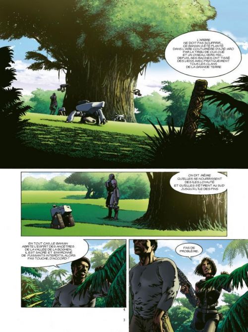 Au revoir l’ouragan, la Corse et la (fausse) piste du mazzerisme… notre bondissante héroïne poursuit son « cycle de l’eau » entamé depuis le tome 9 en Nouvelle Calédonie. Carmen McCallum s’y retrouve plus ou moins contrainte de jouer les « terroristes » écologiques – contre un salaire de 300 000 euros par jour, tout de même : elle demeure avant tout une vraie mercenaire vénale. Le scénariste Fred Duval est donc soit à l’avant-garde de notre actualité, soit il a eu le nez creux. Car dans cet épisode, l’exploitation des hydrates de gaz en Calédonie trouve un écho tout particulier dans l’actualité politique et écologique de ce printemps 2011, à travers la question des gaz de schiste en France. Dans les deux cas, ces ressources gazeuses providentielles sont pareillement controversées : la rentabilité pécuniaire prendra-t-elle le dessus sur des impacts écologiques désastreux ? Un petit bémol, toutefois : cette fois, Duval abuse peut-être un chouya sur la puissance des nouvelles technologies (l’implant cérébral inhalable, permettant d’assujettir quelqu’un, est un outil bien trop puissant !) et il appesantit certaines séquences sous de longues explications et palabres, certes didactiques et nécessaires, mais fastidieux. Au dessin, Emem livre de nouveaux des encrages réalistes particulièrement détaillés et besognés, au dépend parfois de la fluidité de lecture. Par exemple, les scènes d’action fonctionnent parfaitement (vers la fin), a contrario des exposés magistraux sur fond de mondes virtuels chamarrés, plus décousus. Mais on a sans doute tendance à ergoter, par amour pour cette série d’anticipation et d’action de haute densité…