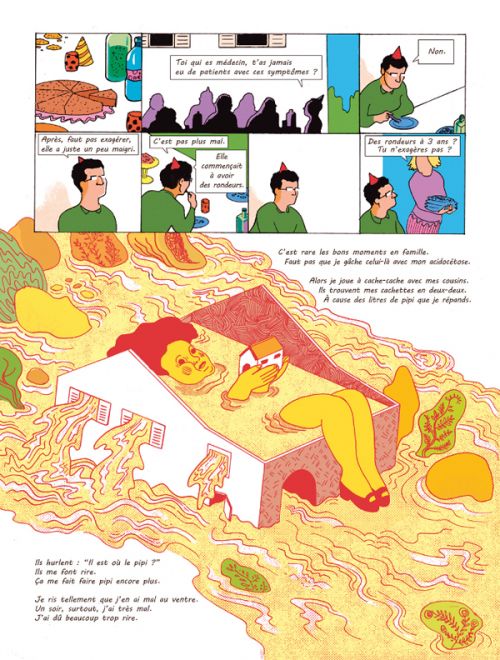 Anna est diagnostiquée diabétique alors qu'elle n'est qu'une enfant. Sa vie va se retrouver bouleversée et rythmée par des rituels étrangers à ceux qui ne vivent pas avec le diabète au quotidien. Cette bande dessinée est une fiction, incorporant le genre autobiographique et le documentaire. Ana Waalder et Mikhaël Allouche ont décidé de se pencher sur la deuxième maladie la plus répandue, en se positionnant du point de vue du malade. Nous suivrons avec elle ses moments de liberté et de bonheur, mais aussi et surtout, la difficulté à vivre avec le diabète, ce que tout cela implique d'un point de vue physique, psychologique, mais aussi en termes d'image, de soins. Cette bande dessinée complète, précise, détaillée, nous permet de mieux cerner cette maladie. Mais parfois, cette partie de recherches peut se révéler un peu longue, effaçant la trame principale du récit. Les familles, les malades, ou les personnes connaissant des diabétiques devraient y retrouver de nombreux points qui leur sont familiers. Les graphismes ont un aspect « old school », avec des couleurs vives et des traits grossiers, ne rentrant pas dans les détails. La masse d'informations, et le découpage ne permettent pas toujours une bonne lisibilité, même si l'ouvrage est découpé en chapitres et permet de faire des pauses de lecture.