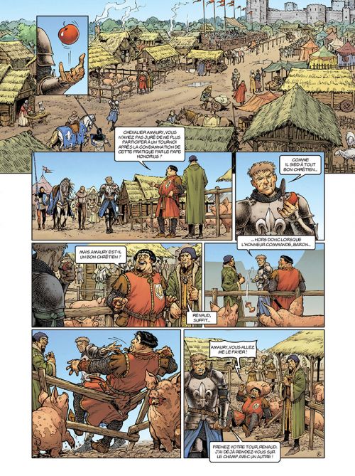 Pour point de départ de ce nouveau Jour J, Fred Duval et Jean-Pierre Pécau imaginent que la conquête de l'Angleterre au début du XIIIème siècle a été un succès. Dans ce contexte dystopique, ils mettent en scène un des personnages respectés des premières années d'un règne de Louis VIII sur Londres. Mais à travers les souvenirs d'Amaury sur son lit d'homme blessé, ils nous plongent quelques années plu tôt dans les suites du sac de Constantinople, qui structure toute la première partie de l'album. Ils prennent soin de parsemer leur récit de multiples citations et éléments historiques, donnant comme à chaque fois une force particulière à leur imagination décalée. Or il semble que très peu de choses séparaient en fait leur réalité imaginée et celle qui a forgé l'histoire. Les auteurs confirment également l'équilibre qu'ils ont trouvé pour que leur série ne demande pas une érudition hors du commun. Cette aventure s'apprécie en tant que telle, avec deux personnages très forts et une habile mise en scène qui commence par la fin (il n'y a pas que James Cameron avec Titanic pour user le procédé du flash-forward). Le dessinateur Leo Pilipovic contribue à cette lecture grand-public avec un style réaliste précis et dynamique, et une imagination graphique visiblement nourrie de Hermann et autres grands maîtres du genre. Ce nouvel opus se lit sans reprendre son souffle et titille suffisamment l'imagination pour qu'on prenne ensuite le temps de se rafraîchir la mémoire historique en lisant quelques articles sur le net...