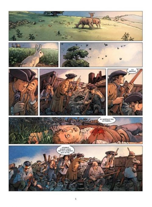 Premier tome d’une plongée dans les débuts de la guerre d’indépendance américaine, la fameuse bataille de Bunker Hill remportée par les anglais, avec un coût humain très important. Les auteurs vont nous emmener sur ce terrain en trois épisodes, ce qui promet une vraie immersion historique et du temps pour apprécier les différentes personnalités clés. Ici on découvre Beaumarchais, dont la vie était bien plus animée que celle d’un simple dramaturge, avec ce rôle d’espion ou d’agent secret qui va tenter d’aider en secret les américains qui se battent contre l’Angleterre. Ce premier épisode semble s’appuyer fortement sur la réalité historique pour faire vivre à ses personnages des scènes très vivantes, pleines de caractère et réellement incarnées. Les dialogues sont soignés, le temps dont dispose le scénariste Jordan Mechner pour cette aventure est un gage de profondeur, ce qui fait toute la différence pour raconter une tranche d’histoire sans donner l’impression de devoir enchaîner les évènements trop rapidement. Étienne Le Roux et Loïc Chevallier apportent tout le niveau de détail graphique nécessaire pour compléter le récit, une densité visuelle remarquable aussi bien dans les visages des protagonistes que la profondeur des décors. Tout est en place pour un récit de qualité, une grosse production en quelque sorte, qui nous éclairera sur les prémices de l’indépendance américaine. Une belle lecture qui mérite qu’on s’installe confortablement pour en apprécier les qualités.