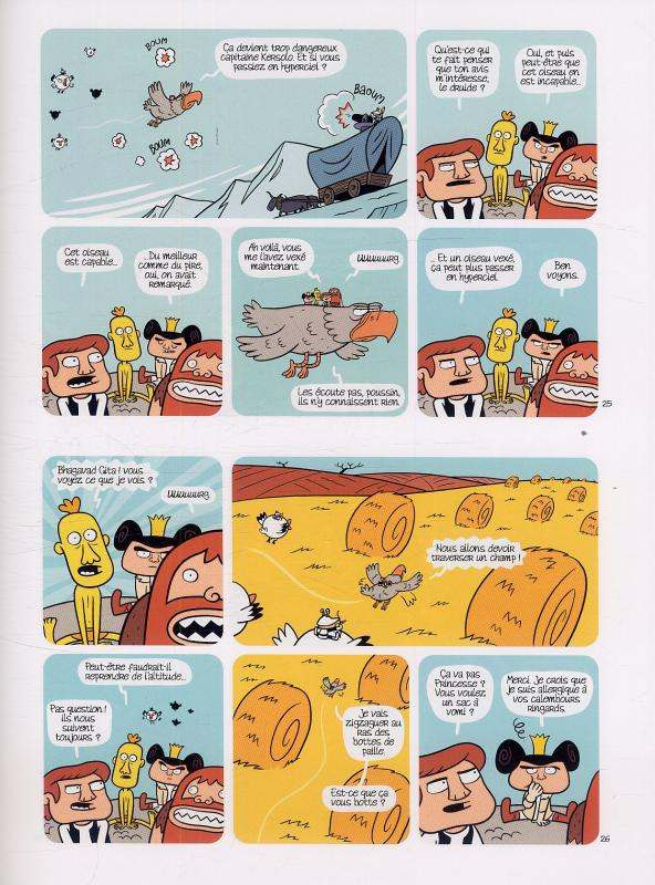 Toujours selon la même relecture parodique, Hervé Bourhis (scénario) et Rudy Spiessert (dessins) s'attaquent au deuxième épisode de la première trilogie de Star Wars, L'empire contre-attaque. Qu'on soit fan ou non de la saga, tout le monde a en mémoire les grandes scènes devenues cultes, comme celle où Dark Vador annonce à Luke qu'il est son père. Du coup, l'effet parodique teinté d'humour et de jeux de mots marche parfaitement et l'on redécouvre avec plaisir l'histoire, découpée en gags d'une demi-planche, pourtant déjà connue en grande partie. Les auteurs réinterprètent avec beaucoup de talents et d'originalité la saga. Ils ont ici trouvés un filon désopilant ! Que ce soit la manière dont Kersolo et la Princesse Leïca se mettent ensemble, Jean-Luc qui se dispute avec la Force rebaptisé la Foy ou encore la planète Dagobah qui devient Dégobi, on rigole du début à la fin devant les trouvailles du duo. Si vous hésitez à vous lancer dans la lecture de la série, rien que le premier gag devrait vous convaincre, à condition que l'humour absurde vous parle. Le dessin stylisé de Spiessert, mis en couleurs par Mathilda, colle parfaitement au ton à la fois bon enfant et bidonnant des aventures du chevalier de Jadis et ses comparses. Vivement le prochain tome qui conclura la première trilogie starwarzienne… avant peut-être que le duo s'attaque au triptyque de préquelle…