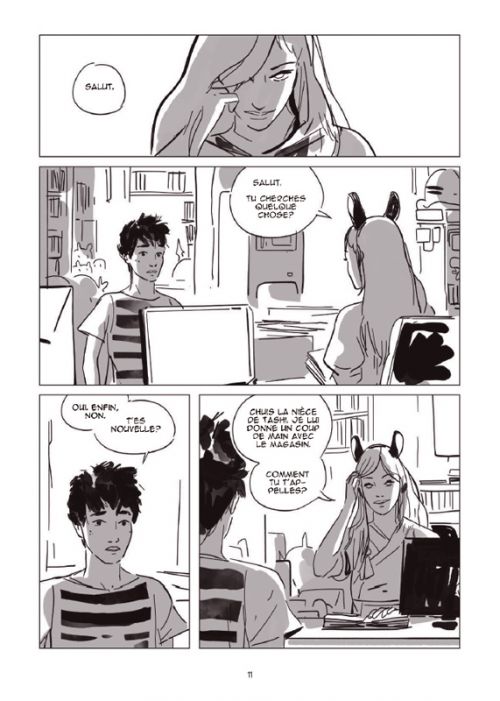 Pandora, 18 ans, donne de plus en plus régulièrement « un coup de main » à la boutique de pop-culture-manga pour clients geeks, de son oncle Tashi. La plupart du temps, elle bouquine à la caisse, où pas grand-monde ne passe. Ce jour-là, lorsque Paul visite la boutique et la voit pour la première fois, elle a fait cosplay : elle s’est déguisée en héroïne de manga, avec des oreilles de chat. Il la trouve très jolie, surtout qu’elle en rajoute en l’allumant un peu. Il ment sur son âge en disant qu’il a 17 ans (il en a 15). Il la revoit quelques jours plus tard, alors qu’il dessine sur sa tablette graphique, en extérieur sur une esplanade. Elle porte un masque de Kami (l’esprit des amours légères) et elle fait la nouille sur la balustrade. Ils papotent un peu. Elle s’assoit à côté de lui, très proche, et elle lui dit qu’il dessine très bien les filles. Il devrait en faire son métier, plus tard. Elle lui montre quand même, en relevant son t-shirt, que le nombril des filles, c’est un peu plus bas. Ils se séduisent réciproquement de plus en plus ouvertement. La fois d’après, Paul passe à la boutique, alors que Pandora a dû enfiler un costume promotionnel un peu ridicule. Elle lui donne sa commande de mangas et lui demande d’aller lui acheter un café dans une boutique spécialisée proche. Paul s’exécute volontiers…