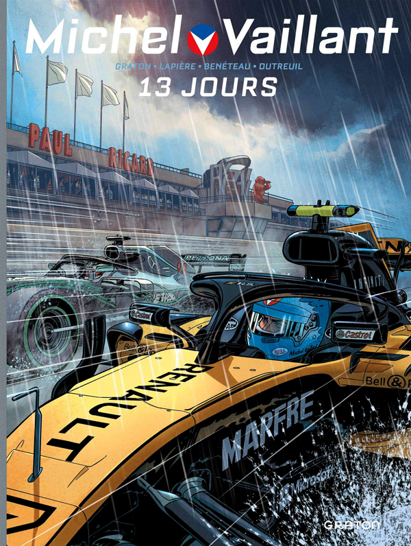 Avec ce tome 8, l’équipe d’auteurs en charge du nouveau Michel Vaillant livre sans doute l’épisode le plus classique du renouveau, comparé à l’âge d’or de cette série culte. Finis les psychodrames familiaux et les faillites industrielles : lors de cette intrigue en one-shot, Michel se borne à incarner la figure du héros providentiel et courageux, qui fait preuve d’abnégation et de solidarité, pour s’en sortir finalement (quasi) vainqueur. En ce sens, il remplit toutes les cases de la grille de poste de la chevalerie médiévale (« A cœur Vaillant, rien d’impossible »…). Comme l’indique le titre, il ne met en effet que 13 jours à redevenir à son niveau de champion, en suivant une préparation intense et variée. L’album se déroule ainsi en deux temps : primo l’entrainement (les deux premiers tiers de l'album) où on le voit passer par un simulateur, un stage de plongée en apnée, ou même un face-à-face avec un requin… ; et deuxio le Grand Prix (le dernier tiers) où les amateurs de courses automobiles seront aux anges. Les dialogues empruntent régulièrement au vocable expert de la F1 moderne et à ses tactiques, où le moindre rapport est calculé et optimisé. En outre, il est assurément difficile de faire vivre la haute vitesse et les tensions qui lui sont liées en deux dimensions, sur papier… Or le duo de duos (Graton fils et Lapière au scénar ; Benéteau et Dutreuil au dessin) y parvient à merveille. Une fois de plus, la course est exemplaire de mouvements et de suspens. Le vrombissement des bolides et leur confrontation sont dignes de joutes modernes… soit encore une référence proche de la chevalerie. Après tout, les voitures aussi arborent des blasons et finissent par rentrer dans leur écurie !