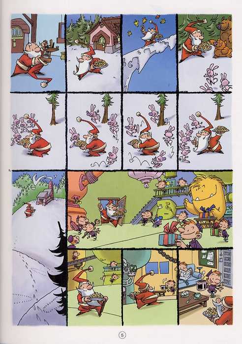 Prévue pour les enfants, Petit Père Noël fera pourtant rire et sourire les plus grands. A l’aide d’un dessin d’une grande candeur, mais en sachant parfaitement éviter la niaiserie, Thierry Robin (Koblenz, Rouge de chine) réussit une nouvelle fois le tour de force de mettre en image de manière limpide cette histoire pour tout public… sans une seule bulle ! En effet, pas un dialogue, pas une seule onomatopée ne vient perturber le fil de cette histoire emprunte de poésie et d’aventure. Evidemment, cela se lit un peu vite… mais le résultat en vaut la chandelle. Le point de départ : un cadeau oublié il y a plus de 60 ans a eu une conséquence dramatique sur la vie d’un homme. La conclusion (que nous nous garderons de révéler) est à la fois tendre, morale sans être moralisatrice et en plus super drôle ! Au scénario, Lewis Trondheim passe avec une grande aisance de la chronique sociale mature (Lapinot), à l’heroïc-fantasy débridée (la sage des Donjon), ou au récit pour enfants. Il est décidemment très fort ce Trondheim !