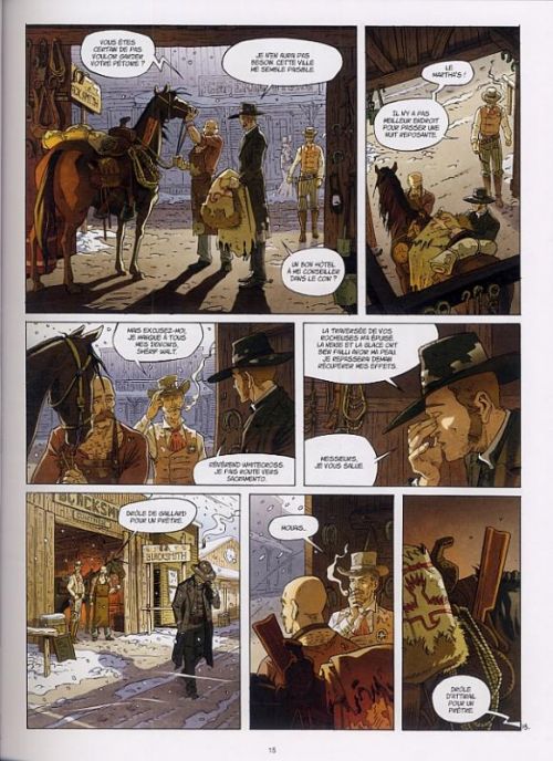 En 1870, une diligence est attaquée par quatre bandits masqués, à proximité d’un patelin nommé Eureka, situé dans le désert du Nevada. Les bandits flinguent les cochers et le précepteur d’Angus, un garçon de 12 ans qui se trouve à bord. Lorsqu’ils commencent à violer sa mère, le garçon empoigne deux flingues et, aussi prompt que l’éclair, il fait carton plein. Bien des années plus tard, Angus Whitecross est devenu un étrange « révérend ». Cow-boy solitaire et armé, il arrive à Eureka en plein blizzard. Il sympathise avec le curé catholique, laisse son cheval au maréchal-ferrant et demande un rasage complet au barbier. Il croise aussi un convoi de filles de joies, qui ont été embauchées pour une fête qui doit se tenir le soir-même au saloon. En effet, Cartus Nance, le plus riche propriétaire terrien – et mécène – de la région, fête son anniversaire… Etrangement, Terrence le barbier tarde à se pointer à cette soirée. Un porte-flingue de Nance le retrouve alors au fond de sa boutique, décédé d’une crise cardiaque suspecte ! Le shérif se méfie aussitôt de ce révérend nouvellement arrivé à Eureka. Avec deux hommes, il arrête Angus alors tranquillement « endormi » dans sa chambre d’hôtel. Collaboratif et confiant, Angus est mis derrière les barreaux pour la nuit. Il avoue tout de même au shérif qu’il est un tueur un gage et qu’il traque un dénommé Gober Alvarez, tueur de femmes et d’enfants. C’est sans doute lui qui a tué le barbier…