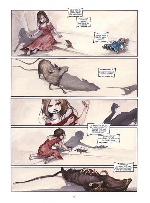 C'est à travers le regard de Jonathan, un journaliste londonien, que le lecteur devine la vie de débauche de cette femme « vampire » solitaire, authentique comtesse hongroise. Le personnage découvre dans ses mémoires le récit glaçant et les mots crus qui décrivent les pires atrocités qu'elle a commises. Sur cette trame horrible, encore une fois, l'auteur Pascal Croci nous régale par son trait romantique. Un graphisme à la coloration glaciale bleue-grisée, des paysages qui rappellent la désolation, une atmosphère morbide... L'image est sublime et la moindre scène même « gore » en devient (presque) belle. Cela dit, il faut reconnaître que l’histoire brasse les tripes… Françoise-Sylvie Pauly, compagne de l'auteur, participe au scénario et confie en préface avoir eu du mal à travailler sur ce projet, tant il la terrifiait. La narration en voix off permet au lecteur de se plonger dans les murs de ce château maudit et hanté à tout jamais. Le sujet est encore vif et honteux pour les Hongrois. Il reste surtout une grande énigme quant au nombre réel de victimes et la véracité des faits… Bref, chimère ou réalité, le mystère reste quasi entier. On est tout de même bien content de ne pas avoir eu l'occasion de croiser la route de cette petite dame. Du même auteur, dans ce même esprit de récit historique de personnes marquantes, vous pouvez poursuivre sur Gloriande de Thémine et Lady Tara Cornwall. Un ouvrage à ne pas laisser entre toutes les mains !