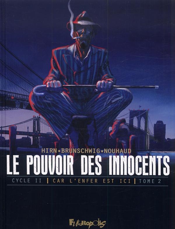 Voici la suite de la suite. Car l’enfer est ici est un cycle qui poursuit exactement le fameux Pouvoir des Innocents. Après un premier tome haletant, les auteurs (déjà créateurs du Pouvoir des innocents) offrent un superbe album, un modèle d’efficacité dans le polar. Comme à son habitude, Luc Brunschwig joue d'intrigues en parallèle, qui finissent par s’emboîter les unes aux autres. Les narrations se multiplient et le lecteur oscille entre pas moins de cinq histoires différentes. Toutes convergent pourtant vers une seule et même trame : l’innocence (ou non) de Joshua Logan. Comme le titre l’indique, cette multiplicité d’épisodes aboutit à trois témoignages capitaux : celui de la psychiatre qui a suivi Joshua avant qu’il ne s’échappe du centre, celui de l’immigrant hindou qui a entendu les coups de feu à l’endroit du meurtre de Carole Ann Stone et, bien-sûr, celui de Joshua Logan, qui ne cesse de crier son innocence et qui offre une version des faits explosive. La narration morcelée est superbement efficace et maintient un suspense insoutenable. C’est aussi l’occasion de travailler les transitions. A ce titre, on a quelques fondus enchaînés remarquables. Certains épisodes en amènent d’autres de façon fortuite, imitant parfaitement le rythme de la vie. Des personnages secondaires émergent de cette histoire multiple, comme l’avocat Cyrus Chappelle ou le dangereux homme de main Domenico. La force de l’album réside aussi dans la peinture de la société américaine. Tout est parfaitement représenté avec une sobriété et une finesse d’analyse étonnantes. Ainsi, les auteurs balaient quasiment toutes les couches sociales : hôpital psychiatrique, monde de la politique, usines qui utilisent la main d’œuvre étrangère, mafia, police, militants politiques… De plus, le cycle repose sur un parallèle des plus impressionnants avec deux destins opposés. Avec habileté, Brunschwig renverse les choses : Logan, innocent rendu coupable, est enfermé en prison tandis que Frazzi, coupable jamais inquiété, traîne sa sinistre carcasse dans les rues de New York. Pendant que l’un essaie de se battre contre les rouages de la société, l’autre les manipule pour mieux accentuer son emprise. Le dessin de David Nouhaud (mis en scène par Laurent Hirn) est tout aussi sublime et la couleur accompagne parfaitement ce trait ciselé. A tel point qu’on a l’impression de voir du Hermann (c’est d’autant plus vrai quand on voit la beauté de la couverture en couleurs directes). Bref, le tome est parfait de maîtrise narrative et graphique et d’une densité remarquable. Le trio Brunschwig / Hirn / Nouhaud réussit le tour de force de remettre au goût du jour la puissance du Pouvoir des innocents, d’autant que plusieurs flashbacks permettent de retrouver ce cycle fondateur.