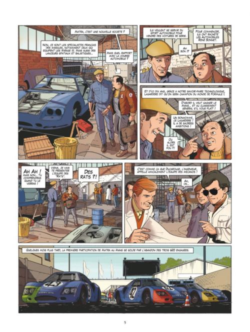 Les éditions Glénat font un nouveau focus sur un épisode historique qui a marqué la célèbre compétition automobile du Mans. Au-delà de la dimension sportive, cette course d’endurance revêt d’importants enjeux pour les industriels qui y participent. Entre 1972 et 1974, Jean-Luc Lagardère dominera l’épreuve avec ses Matra. De grands noms du pilotage comme Pescarolo, Beltoise ou Covert vont participer à la naissance de cette épopée légendaire. Même si cette BD s’adresse en priorité aux passionnés de sports mécaniques, les néophytes se prennent au jeu de ces courses endiablées où règne une tension incroyable, avec de nombreux rebondissements (parfois tragiques). Le rythme insufflé est ultra-dynamique, y compris dans les stands : les mécaniciens sont capables de changer un démarreur en moins de 20 minutes alors que votre garagiste, lui, immobilise votre véhicule 2 jours et pour la modique somme de 600€ ! Même si certains passages techniques sont un peu trop descriptifs, la lecture n’est pas fastidieuse. Le dessin réaliste et soigné de Christian Papazoglakis et Robert Paquet met en valeur les lignes des voitures.