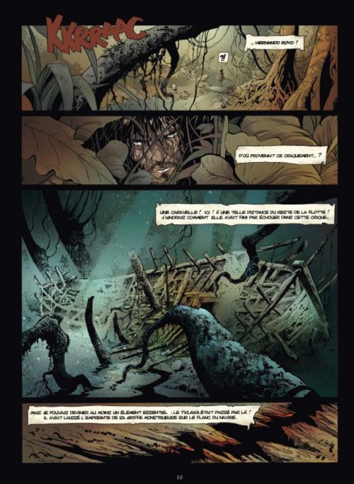 Après s’être attaqués avec brio au moyen-âge ésotérique avec Croisade et Nomade, Jean Dufaux et Philippe Xavier lancent une nouvelle série intitulée Conquistador. Même si l’histoire se déroule à des milliers de kilomètres de la Terre Sainte, on retrouve ici les thèmes de prédilection des deux complices : du sanguinaire, de la sensualité, de la virilité, du mystère et du mystique. Avec Conquistador, Dufaux révèle une nouvelle fois son sens aiguisé de la narration. Ses dialogues percutants trouvent ici toute leur dimension dans cette aventure exotique, bien loin du Temple du soleil de Tintin ou des Mystérieuses cités d’or de notre enfance. Il revisite un pan méconnu de l’Histoire, particulièrement violent : celui des conquistadors, qui ont mis fin à l’empire aztèque. Précisons qu'à l'époque, les aztèques considéraient que Cortès, vêtu de son armure brillant de mille feux sur son cheval, était ni plus ni moins l’incarnation de Quetzalcoalt, le dieu serpent. Son armée abusa de leur crédulité et les extermina. Comme toujours, le dessin de Xavier est somptueux avec des encrages élégants sublimés par les couleurs chatoyantes de Jean-Jacques Chagnaud, le coloriste attitré du duo. Très rapidement, il nous plonge dans l’histoire : un découpage merveilleusement orchestré, des plans fourmillant de détails, et par moment des cases verticales renforçant l’impression de vertige sur les temples et les paysages (magnifique double planche 56-57). De toute évidence, vous serez conquis par Conquistador et obligés de vous armer de patience en attendant le tome 2 prévu pour novembre 2012.