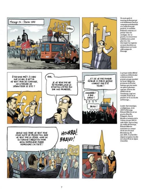 - Le naufrage de Florange au côté des ouvriers : Lors de la campagne présidentielle de François Hollande, celui-ci se rend à l’usine de Florange afin de marquer d’un coup médiatique la promesse de sauver le site. Au lendemain de son élection, ce sont tous les employés de Mittal qui jubilent, ils vont voir leur outil de travail sauvé par le Président lui-même. Les semaines qui suivent, une mission d’expertise commence donc sur le site de Florange, menée par le ministre du développement productif, Arnaud Montebourg…