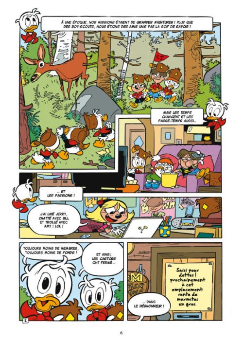 Les éditions Glénat présentent le premier volume d’une série consacrée aux Castors Juniors, soit les neveux de Donald, Riri, Fifi et Loulou. Certains se rappelleront des années 70 et 80, époque durant laquelle le manuel des Castors Juniors vit le jour. Le principe de ce manuel était de proposer tout un panel de trucs et astuces pratiques, ainsi que moult connaissances sur la nature, pour devenir un vrai baroudeur et roi du système D. L’idée de ce guide est cependant toute autre : il propose aux lecteurs six histoires modernes des Castors Juniors. Chaque histoire est ensuite complétée par des conseils pratiques et une fiche technique explicative sur un point précis en rapport avec le cœur du sujet de l’histoire, le tout bien sûr tenant sur deux pages. De fait, on peut apprendre entre autre à construire une cabane dans les bois ou fabriquer une catapulte, ce qui s’avère un poil léger pour être un bon Castor Junior. Ce guide ne propose finalement rien de bien intéressant en terme de savoir et de techniques utiles pour vivre dans la nature. Il s’agit surtout ici du rassemblement de quelques aventures amusantes, mais très modernes, de Donald et de ses neveux Castors Juniors. Un peu léger pour être digne d'être baptisé « guide ».