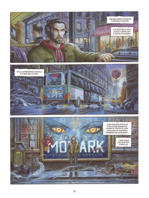Olivier Ledroit n'est pas un illustrateur. On veut dire par là qu'une BD de Ledroit, c'est une question de voyages. Enfin, c'est lui qui transforme le livre en objet du voyage immobile dans lequel il vous embarque. Le début de ce Troisième œil commence par deux doubles pages et 10 planches muettes qui nous immergent dans un Paris nocturne. Polar oblige, ce sera le théâtre d'un meurtre. Puis vient Mickaël, un apprenti qui travaille sur le chantier de Notre-Dame, qui découvre un éclat d'un vitrail indigo du XIIème, de fabrication alchimique. Mickaël est doué de synesthésie : il a la faculté de traduire les sons, les mots ou les notes de musique en couleurs, formes et textures. Une conjonction d'évènements va l'amener à percevoir l'aura de chaque personne, puis de percevoir l'univers comme un ensemble de vibrations. Olivier Ledroit nous amène donc avec son personnage dans un parcours initiatique d'élévation de l'âme. Ses planches, comme on le disait, échappent à l'illustration. Elles viennent sublimer le texte et l'histoire de ce jeune homme à la perception extrasensorielle qui vient recevoir l'instruction de sages. Pour lui, il est question de transmission, d'autres (et on reconnaîtra Philippe Druillet) passant le relais d'un pouvoir métaphysique : comprendre l'architecture de l'univers. Alors les pages à la beauté cosmique et hallucinée de Ledroit sont comme une nef qui abrite son lecteur. A la façon justement d'un Druillet, il éclate complètement le format des pages quand son récit est empli de symbolique. Le troisième œil, cette métaphore ésotérique, désigne celui qui offre un regard allant au-delà de ce que l’œil perçoit. C'est bien ce qu'Olivier Ledroit révèle à nos yeux et notre âme. Gageons que le tome suivant continuera sous la lumière de ce Paris mystique !