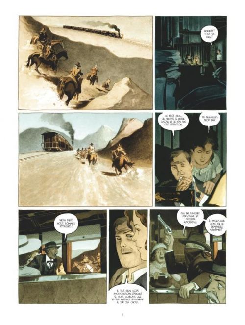 Avec le formidable support graphique d’Emmanuel Bazin, Antoine Ozanam continue de nous narrer la véritable histoire d’Emmett Dalton, qui pâtit d’une assez Mauvaise réputation. Son destin authentique se situe en effet bien loin de l’image qu’a popularisé René Goscinny dans le tome 6 de Lucky Luke, Hors la loi (où les frères Dalton apparaissent pour l’unique fois dans la série ; les autres Dalton quasi systématiquement parodiés sont leurs cousins imaginaires). Par exemple, le vrai Frank Dalton était un marshal courageux et honnête, tué dans l’exercice de ses fonctions. Bill fut un simple fermier, accusé à tort. Trois autres frères et vrais bandits Dalton détroussaient certes les voyageurs des trains ou attaquaient des banques entre 1890 et 1892 dans l’Ouest américain, mais ils le sont devenus par un concours de circonstances atténuantes, initialement pour réparer une spoliation de salaire. Celui qui nous intéresse ici, Emmett, a survécu à la fusillade de Coffeyville (Kansas) qui a été fatale à Grat et Bob. Une célèbre photo montre leurs cadavres sur un plancher, avec deux autres complices, à l’issu du règlement de compte fatal. Cette photo est réutilisée dans cette sorte de biographie reconstituée par Ozanam, qui entrelace de près deux fils narratifs : l’emploi de consultant et d’acteur d’Emmett au présent (1908) sur ses dernières années pour les studios naissants d’Hollywood, et ses souvenirs tragiques de son passé de bandit. Notamment la double attaque de Coffeyville (1892) conclut magistralement le diptyque, qui ponctue régulièrement la narration avec de fausses couvertures de journal newyorkais d’époque. Mais la grande plus-value vient de la traduction visuelle de cette histoire par Emmanuel Bazin, une pure réussite. Intelligemment, le découpage impeccable met régulièrement en valeur les grands espaces et le décorum très réaliste, quasi documentaire. Il s’accompagne d’un style aquarellé qui tire vers le sépia ou les teintes monochrome des vieilles photos ou pellicules, pour une immersion totale. Le frère Dalton survivant en ressort franchement réhabilité.