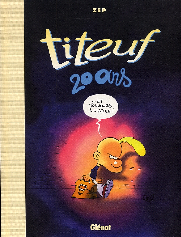 Glénat offre un hommage à la série phare de son catalogue : Titeuf. Pour cela, aucun auteur n’est convié à célébrer l’anniversaire du personnage : c’est son propre créateur qui se charge de revenir sur les vingt années qu’il a passées avec Titeuf. La démarche pourrait paraître un brin égocentrique, mais Zep trouve le ton juste dans cet album de souvenirs. Il alterne les extraits des meilleurs moments des albums déjà parus et des grandes pages récapitulatives qui reviennent sur les faits marquants des années passées. Ainsi, le lecteur apprend une foule de petites anecdotes drôles sur la création du personnage, son évolution et son succès grandissant. Loin d’éviter les sujets qui fâchent, Zep n’hésite pas à parler de chiffres de vente (énormes pour le monde de la BD) mais il ne s’en vante pas pour autant. Bien au contraire, l’auteur partage simplement son émotion et sa surprise d’avoir atteint les sommets de façon aussi soudaine et inattendue. Ainsi, on a l’impression d’assister à un rêve de gosse : Titeuf lui-même n’aurait pas fait mieux ! Avec beaucoup d’humilité et d’amour de son métier, Zep reproduit tous les grands moments qu’il a vécus dans cette aventure folle. Il rend notamment hommage à ses pairs et dessine le grand maître Gotlib, Uderzo ou encore Morris. C’est également l’occasion d’apprécier la qualité du dessin de l’auteur qui, à travers un style inimitable, caricature gentiment des stars de tous milieux : Johnny Hallyday, M, Laurent Delahousse, Patrice Leconte… Grâce à Titeuf, Zep a réalisé une multitude de rêves extraordinaires : une adaptation en dessin animé puis en film, une statue à l’effigie du personnage, un mur entièrement dessiné dans Bruxelles, un succès mondial (Titeuf est même traduit en Indonésie !), une multitude de grands prix (Zep sera président du festival d’Angoulême en 2005)… Tout ce succès et cette effervescence autour de la série valaient bien un petit récapitulatif. C’est également un bonheur de retrouver des extraits en une planche de Titeuf et ses amis. Si l’on en doutait encore, ces morceaux choisis prouvent le talent de l’artiste, tant dans le dessin que dans la science du dialogue et du gag. L’outil est certes commercial et connaîtra autant de succès que les vrais albums de Titeuf, mais c’est aussi l’occasion de découvrir l’homme qui se cache derrière l’enfant de papier : un artiste brillant et au grand cœur.