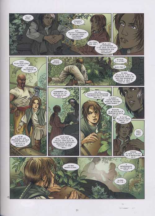 Fin de cycle de cet imposant projet : ce 4e opus met un terme au volet futuriste de la série. Le bilan suscite une moue dubitative, tant cette première partie n’aura pas convaincu. Objectivement, au cours de ces presque 200 planches, peu de choses auront été révélées. On se demande presque si un seul volume n’aurait pas suffit… Certes, cette dernière partie nous offre une petite surprise, mais franchement on s’y attendait un peu. Le principal défaut de cet ambitieux projet réside dans le fait qu’il ne laisse jamais entrevoir où il veut nous mener. Les quatre albums se sont contentés de planter les balises qui serviront, on l’espère au moins, de pont entre les différentes époques. On craint alors qu’il ne faille attendre la fin du dernier cycle pour y trouver la cohérence. Restons toutefois optimistes et patients en attendant le début du prochain cycle qui s’ancre dans le présent. Qu’il éclaire d’un jour nouveau la série et nous aurons bien vite tout oublié. Le dessin d’Eric Stalner est toujours aussi plaisant. On remarque, en particulier, son talent pour représenter tout type de végétation, des colorisations judicieuses et une maîtrise parfaite des cadrages. On regrettera peut être que ses personnages se ressemblent tous un peu (y compris avec ceux de ses autres séries). Cette particularité se superpose parfois malencontreusement avec la confusion née du scénario. Malgré tout, le projet n’arrive pas à décevoir tant l’idée de départ était alléchante, tant la suite suscite l’intérêt. Alors recourons vite, nous aussi, à l’énergie quantique et sautons à pieds joints dans le Présent…