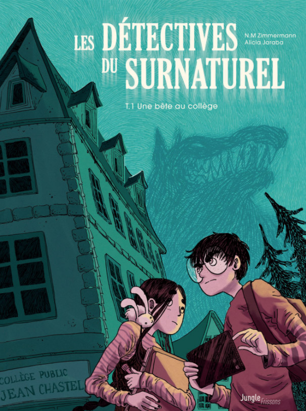 Ces jeunes détectives, nouveaux-venus dans le monde des thrillers fantastiques en BD jeunesse, sont un peu les Mulder et Scully (héros de X-Files) des adolescents. Aussi invraisemblable cela puisse paraître, ils ont une quinzaine d'années, possèdent déjà une solide expérience et de larges connaissances en matière de créatures paranormales, et ils sont disponibles du jour au lendemain lorsqu'on les contacte sur leur site internet. Mais chuuuut... personne ne doit savoir qu'ils sont en mission ! Ces bases rocambolesques n'empêcheront pas les jeunes lecteurs de frissonner tendrement, comme ils le feraient en lisant un Chair de poule. Darwin et Légende (tels sont leurs noms de code) s'intéressent pour leur première énigme à une sorte de loup préhistorique (si ça vous turlupine, vous wikipédiarez « Canis Dirus »). La narration de Naïma Zimmerman tergiverse pas mal, notamment pour réserver de longues plages de suspens. Certaines séquences de traque sont efficientes, mais le fond de l'intrigue demeure comme flou jusqu'à la fin, qui nous abandonne avec nos interrogations, comme un cheveux de yéti dans la soupe de bave de crapaud. Le dessin stylisé d'Alicia Jaraba est beaucoup plus convaincant dans le registre jeunesse. Les héros omniprésents sont attachants, ils prennent place dans des cases aux bordures vacillantes, et bénéficient d'une colorisation ad hoc au genre de l'épouvante pour ados. Une prochaine enquête devrait les envoyer sur la piste des soucoupes volantes du côté de Madrid. Olé les aliens !