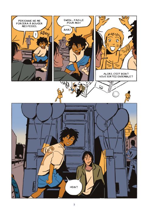A vélo, Noah monte une côte du mieux qu'elle peut, pour rejoindre son ami Gwen à son appartement. Lorsqu'elle arrive, Gwen est sur les marches du perron, une cigarette sur le bout des lèvres. Surprise, Noah lui demande s'il l'attend ici depuis longtemps. C'est le cas, depuis que les colocs ont augmenté le volume de leur musique, jusqu'à ce que cela devienne insupportable. Noah rigole : elle était persuadée que Gwen se serait enfui avec son chat. Avec ironie, Gwen répond qu'il a hésité, mais que la tentation de voir Noah faire son show et sa petite chorégraphie ont pris le dessus et il est resté. Noah commence à se déhancher, tandis qu'ils continuent de discuter. Soudain, ils sont surpris par une voix provenant de la rue en courant : une de leur connaissance arrive en criant « Alors c'est bon, vous sortez ensemble ? » Noah et Gwen sont interloqués. Sidérés, ils ne comprennent pas. La fille continue : « Bah, il y avait bien une histoire de crush, non ? » Noah réfute... Un jeune homme arrive et clame « Alors c'est le love ? » Puis une autre personne et d'autres encore... C'est toute une foule qui se presse vers eux, ravie que le couple s'officialise ! Enfin Gwen en Noah sont ensemble ! Pourtant, il n'en est rien, ce n'est qu'une rumeur qui prend de l'ampleur... Dans ce brouhaha assourdissant, le chat de Gwen sort du logement. Il le rattrape in extremis et profite de l'occasion pour fuir : il doit le ramener à l'intérieur, pour le mettre en sécurité dans son appartement, qui est au dernier étage.