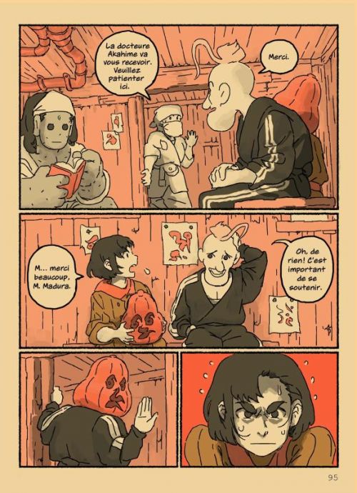 Valentin Seiche a travaillé sur le jeu vidéo Samurai Gunn, de type Beat Them All. Il étoffe ici cet univers, se l'approprie une nouvelle fois, mais sous une forme différente. Il en fait une bande dessinée, très fortement inspirée par le jeu vidéo initial, mais aussi par le manga. Ces influences se ressentent dans la manière de raconter l'histoire mais aussi de la retranscrire visuellement. Les personnages reprennent les codes graphiques du manga ; très expressifs, dynamiques et pour certaines scènes, simplifiés en mode kawaï. Les combats ont également une place importante dans les planches et le découpage permet d'apporter de la vitesse, du mouvement, prenant le lecteur dans l'action. L'auteur n'hésite pas à utiliser des onomatopées et les codes visuels propres au manga pour signaler une action ou une expression. L'histoire se déroule sous forme de quête initiatique. Nous suivons la jeune Red dans son cheminement personnel pour devenir celle qu'elle a toujours voulu être. Pour cela, elle fera des rencontres et devra se montrer à la hauteur. La famille, le deuil et les dérives de la drogue sont les thématiques principalement abordées dans la bande dessinée. Toutefois, si l'univers est très riche, il peut parfois nous perdre un peu. Un passage en milieu d'ouvrage, notamment, fait perdre le fil au lecteur, avant de le replonger dans l'ambiance énergique du début.