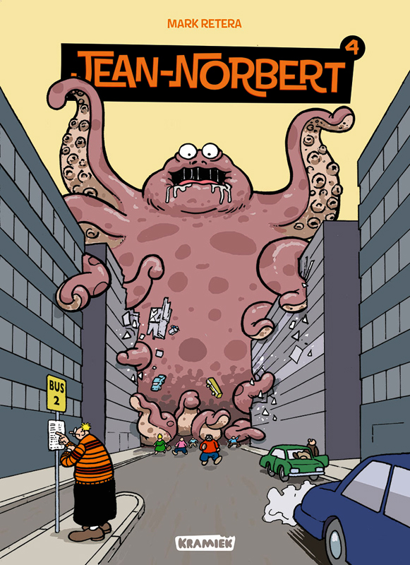 Mark Retera est décidément un couillon génial, passé maître dans le registre de l’humour absurde, non-sensique, imprévisible et efficace. Dans ce 4ème recueil de strips gaguesques en 3 cases (rarement 2, mais parfois plus), le néerlandais remet en scène son aéropage de personnages caricaturaux et empotés : l’idiot et mal proportionné Jean-Norbert, le bedonnant Bert à la cigarette vissée au bec ; le professeur à pantalons éléphantesques ; mais aussi par intermittence et surtout quand on ne les attend pas : les lutins, les schtroumpfs, les pin-ups, les extraterrestres et les monstres… Car absolument tout peut arriver dans Jean-Norbert. En marge de gags du quotidien dans leur milieu contemporain et urbain, nos protagonistes se déclinent cette fois à quelques nouvelles thématiques de genre, très éclectiques : dans un restaurant, chez les bucherons, à l’apprentissage sage et zen du kungfu, au décorum d’Indiana Jones, au milieu de la mode, aux sous-marins nucléaires, aux sport d’hiver sans neige, aux tout débuts du pléistocène, au vikinkgs. Les effets zygomatiques sont très variables, mais quelques gags ne manqueront pas de déclencher de puissants éclats de rire (ex : le schtroumpf qui retire son bonnet).