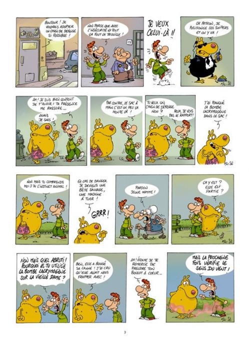 Dans la réédition de ce second recueil de gags de Michel chien fidèle, Sti confirme tout son talent pour le gag court (4strips horizontaux par page) et percutant. Le registre de l'humour canidé domestique n'est pourtant pas facile à renouveler, après des milliers de strips et historiettes de Snoopy, Cubitus ou autre Boule et Bill ! Qu'est-ce qui fait que Michel fait preuve d'une réelle drôlerie ? Tout d'abord, une dégaine d'abruti fini : Michel a le pelage orange, une truffe rose, une bedaine inhérente au tempérament gaffeur / gourmand et le regard niais. Ensuite, les situations dans lesquelles il se retrouve sont variées, bien dans notre époque et elles utilisent la technique du running-gag avec une savante parcimonie (jamais plus de 3-4 gags dans un même contexte). Tertio, Sti dispose de cette science de la chute percutante, si rare dans l'univers de la BD d'humour grand-public. En outre, Sti sait ne jamais être mou/niais, sans pour autant dériver dans le scato-trash-crado (à une fiente dans le gosier près). Parfois, l'utilisation de l'ellipse renforce le décalage de la dernière case, parfois c'est le dessin caricatural de Mic qui fait le job. Cadeau bonus : une page à découper, selon une notice et suivant les pointillés, se trouve en annexe afin de fabriquer votre Michel en carton !