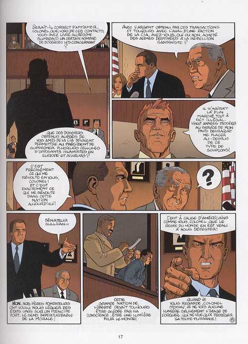 Larry B. Max passionne toujours autant que la feuille d’impôt qu’il est censé récolter. Quelle idée de faire un héros avec un percepteur !? N’en déplaise, les spécialistes cautionnent la rigueur des informations. IR$ colle au plus juste des réalités politico-financières (le tome 4 a même été publié dans Les échos), elle demeure cependant entortillée et pénible à suivre. Côté récit, Stephen Desberg multiplie les fils de l’intrigue. Au lieu de donner du rythme, cette méthode embrouille un peu plus la narration générale, déjà très complexe (une société paravent sise dans un paradis fiscal a permis un trafic d’armes avec un ex-chef d’état assassiné). Les planches de Vrancken sont comme à l’accoutumé, d’une précision à faire pâlir un service fiscal. On tourne les pages sans trop pousser l’intellect. Toutefois, une page est en train de se tourner : Gloria, la fille du téléphone rose auquel Larry est accro, est agressée par la méchante fille de main de la Silicia. Il va falloir lui coller un contrôle.