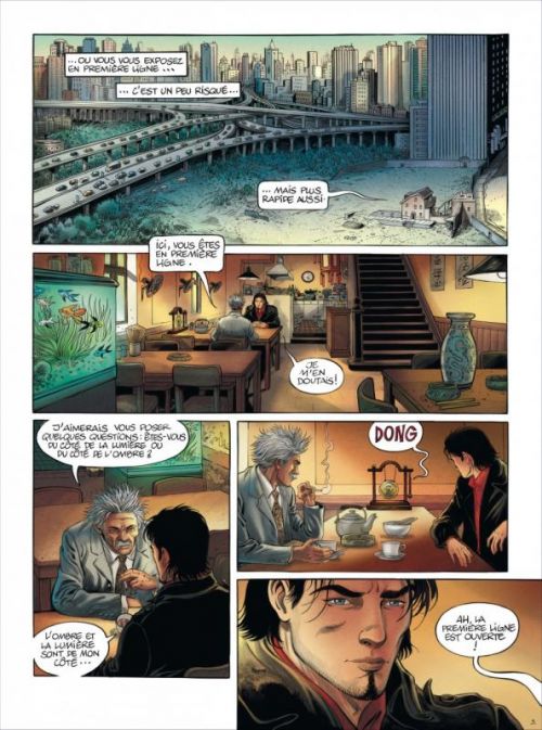Pour ce nouveau cycle annoncé, trois albums devraient faire prendre à notre diplomate-magicien – à jolie barbichette – une nouvelle direction : sans doute plus sombre et jouant sur des temporalités différentes. On pourrait même presque prétendre qu’il ne sera pas nécessaire de se (re)plonger dans les 10 tomes précédents pour profiter de ce nouveau mouvement. Mais profitez-en tout de même pour vous réhabituer, après 5 ans d’absences, à la lumière de cet univers tanné d’ésotérisme, d’intrigues, d’action et confié à un héros attachant. Une petite piqûre de rappel pourrait en effet toujours vous servir à goûter cet entame qui, loin de rassasier, fait tout de même le boulot : planter les jalons d’un nouveau fourmillement de mystères mettant directement Niklos Koda et sa famille en probable danger… Shanghai constituera le décor de cette introduction menée autour de l’impérieuse nécessité de détruire le 6éme livre, celui des « plaintes et des pleurs ». Un ouvrage maléfique que Koda a funestement utilisé et qui semble désormais guider sa destinée. Sa destruction sera-t-elle donc irrémédiablement liée à l’existence de notre magicien ? Quoi qu’il en soit, un petit monde connu (Otto Kral, Hali Mirvic, Menahem Yitsk, quelques membres du fameux club Osiris…) s’agite autour de l’appropriation dudit manuscrit dans un entrelacs souvent brouillon (ou plutôt brumeux). Au final, certains disparaissent (?), d’autres reprennent la compét’ pour une certitude : Niklos Koda et sa famille (en particulier sa fille Seleni) seront au centre de cette nouvelle partie. Si l’ensemble laisse un petit gout de complexité inutile, au détriment peut-être d’une capacité à capter notre intérêt pour de bon (53 pages pour apprendre peu…), la partie graphique proposée par Olivier Grenson est au sommet. L’élégance est une nouvelle fois de mise, qu’il s’agisse des cadrages, des mouvements, des jeux de contrastes et de lumières scellant une fois encore parfaitement l’atmosphère de la série. Son dessin participe ainsi grandement à l’envoûtement qui, malgré nos remarques, continue de faire son effet pour nous donner envie de suivre ce personnage atypique de la BD...
