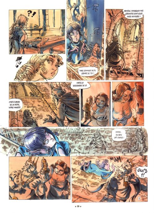 Après cinq albums relatant des aventures inédites des Chevaliers d’Émeraude co-édités par Michel Lafon et Casterman, ce dernier éditeur a décidé de quitter le navire. Du coup, les éditions Michel Lafon en solo nous proposent une « nouvelle » série adaptant désormais uniquement les différents romans. Anne Robillard (au scénario) propose alors un récit souffrant du syndrome d’épuration inhérent au fait de devoir adapter 345 pages en seulement 54, pour entrer dans le carcan BD. Le récit n’est pas mauvais en soi, mais il passe trop facilement de séquence en séquence, sans qu’on puisse vraiment en apprécier la saveur. On a par exemple une bataille qui ne se déroule que sur deux pages ce qui est plutôt frustrant. C’est d’autant plus dommage qu’avec Tiburce Oger aux manettes graphiques, les dessins sont une nouvelle fois fabuleux. Le dessinateur sauve clairement la situation en passant avec aisance d’une scène à une autre, d’un endroit à un autre. Il offre un décor moyenâgeux splendide, dans lequel on se perd avec plaisir. Bref, on peut se demander pourquoi avoir résumé le tome 1 en un seul album BD, et non en plusieurs. Est-ce une décision de l’éditeur ? C’est le seul reproche qu’on peut décemment faire à cette nouvelle mouture des Chevaliers d’Émeraude version 9ème art…