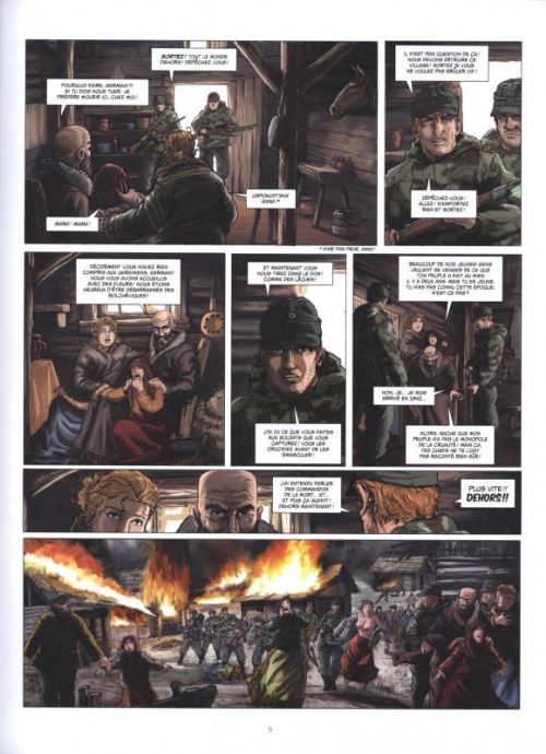 La seconde guerre mondiale sur le front de l'Est continue pour le soldat allemand Kessler. L'auteur Olivier Speltens nous plonge de nouveau dans le bourbier ukrainien dans lequel les troupes allemandes s’enlisent. Il réussit avec brio à nous montrer ce front méconnu de la guerre, vu du point de vue allemand. Dans cet enfer glacé, les allemands tentent coûte que coûte de stopper la réorganisation soviétique et leur reprise du terrain. Le dessin impeccablement réaliste de cet auteur complet montre des scènes de guerre fort bien menées. Les champs de batailles, les mouvements de troupes, les avancées des chars et les scènes de combats aériens retranscrivent avec beaucoup d'authenticité ces moments de guerre. On s’attache à Kessler et à ses compagnons, malgré leur statut d'ennemis de notre point de vue franco-belge. Dans tous les cas, on partage les difficultés auxquelles ils sont confrontés, l'âpreté des ordres, mais aussi l’intensité des combats contre les troupes soviétiques. Speltens livre donc un récit touchant et jonché de détails intéressants sur la façon dont les allemands ont mené ces combats. Le tome suivant livrera l’issue finale de cette guerre, et nous dévoilera enfin le devenir de Kessler et de ses compagnons.