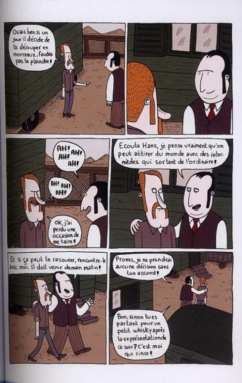 Dans ce petit ouvrage souple qui ne paye pas de mine, Halfbob propose une histoire plutôt rigolote et sans prétention. Ici, un directeur de cirque est acculé de dettes et inconsolable depuis la mort de sa femme, Melinda. Alcoolique et au bout du rouleau, il se retrouve à devoir gérer un (vrai) médium dans son cirque. En effet, grace à ses révélations, ce dernier est une mine d'or, mais il représente une réelle menace pour le principal débiteur du directeur, un hoimme dangereux. Le ton est léger, plutôt fun et sort largement des sentiers battus. Le dessin est quant à lui minimaliste, sur un mode quasi enfantin et s'intéresse clairement plus aux personnages et à leurs palabres qu'à l'action spectaculaire ou exotique. Découpé en deux chapitres, le rythme de narration offre néanmoins une bonne lisibilité d'ensemble et accorde de l'empathie aux personnages. Bref, de quoi inciter à la découverte. Les dernières planches laissent toutefois le lecteur sur sa faim, avec un final « en queue de ». Cela serait-il la conséquence d'un projet trop tôt avorté ou une suite serait elle envisagée pour lui attribuer le brin de cohérence manquante ?