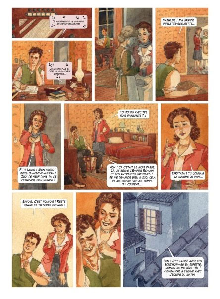 S'agissant de la seconde guerre mondiale, les récits héroïques et romantiques sont évidemment beaucoup plus politiquement corrects selon le point de vue des résistants que celui des SS. C'est pourtant sous cet angle original et peu couru que le scénariste Thierry Gloris s'attaque à une nouvelle série romantique et historique, inspiré par son propre passé familial. Bien loin des aspects ésotériques et/ou spectaculaires de ses récents Codex angélique, Saint Germain ou Waterloo 1911, Gloris se frotte à un travail de mémoire didactique, qui sonne très juste dans les émotions et les évènements. A travers l'expérience de ce jeune alsacien qui n'a vraiment pas envie de devenir SS, le propos démontre qu'il est possible d'accorder une forme de rédemption aux tortionnaires des années 40, en contrepied au manichéisme habituel du registre. Les dialogues sonnent juste, la psychologie des personnages est au diapason, les émotions palpables... Or, les qualités narratives de cette mise en bouche se complètent d'un superbe dessin réaliste, en couleurs directes, signé Marie Terray, pour qui il s'agit du premier véritable album (chapeau !). La somme de ces aspects (occupation, émotions et couleur directes) rapproche le premier tome de Malgré nous des célèbres diptyque de Gibrat (Le sursis, le vol du corbeaux), ce qui n'est pas la moindre des références, la réflexion politique en prime...