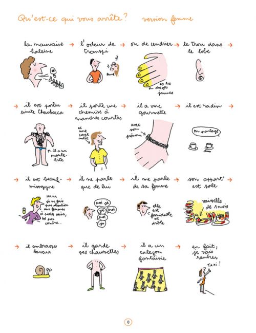 Toute l'année durant, Soledad égaie les pages du magazine féminin Elle avec ses drôles de planches mettant l'accent sur nos travers du quotidien ou sur l'actualité brûlante du moment. Avec Soledad, pas de flonflon, juste des questions et des réponses illustrées en mode quick-drawing. Même si, par moments, ce type graphique est âpre à la lecture (on ne lit pas l’album d’une traite sans faire de pause), on se laisse amuser par ces questions qu’on est amenés à se poser dans la vie de tous les jours. L'autrice passe au crible tout ça au tamis de la légèreté (les tatouages, le véganisme, les hipsters), jusqu’aux sujets les plus touchy (l’avortement, la capsulite). Les filles peuvent se ruer sur cet ouvrage qui les touchera ; leurs mecs ne manqueront pas de les lire en leur absence pour savoir ce qui se passe dans la tête de leur moitié.