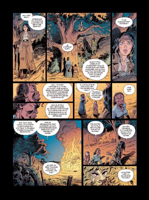 Dans ce nouvel opus, Emilie se dirige vers sa nouvelle victime. Le troisième tome de La Venin commence avec une rencontre fortuite avec la société secrète du Klan. Après le dernier Lucky Luke (Dans le coton), c’est à Emilie de se frotter au Ku Klux Klan. De nouveau, la jeune femme ajoute à sa liste de poursuivants une ennemie redoutable. Après la fille du gouverneur qui a mis sa tête à prix, l’agence Pinkerton, le Klan se lance aux trousses de la jeune femme, sans parler des coyotes aux foies jaunes appâtés par la mise à prix. Comme dans le Lucky Luke, le scénario reste très factuel concernant le KKK. D’ailleurs, ils n’ont pas une grande place dans l’intrigue principale. Heureusement, la jeune femme peut compter sur le fameux mystérieux indien qui se dévoile un peu plus dans cet album. Laurent Astier fait un grand pas dans l’intrigue principale. Ce nouveau tome n’est pas avare en révélations et de nombreux lecteurs seront surpris de ce qu'ils apprendront dans cet opus. Le scénario est mené avec beaucoup d’entrain et le suspens monte d’un cran. Car avec ses différentes exécutions, La Venin n’arrive pas incognito dans le fief de Oil Town. Au niveau du dessin, Laurent Astier nous offre une virée de la boue des derricks de l’Ouest jusqu’aux riches villes de l’Est. Dans un style semi-réaliste, Laurent Astier éblouira le lecteur de sa parfaite maîtrise du détail. Les planches sont réellement superbes et l’immersion est garantie. Ce nouvel opus est dans la même veine que les précédents, pour le plus grand plaisir des amateurs de la série.