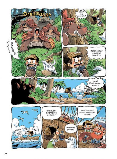 Archibald, le petit enquêteur du BEM (Bureau Enquête Monster) qui a la capacité de se transformer en chauve-souris (la nuit seulement !), continue ses aventures fantastiques et rocambolesques aux côtés de son copain Monk, un chien-cyclope qui parle. Cette fois, ils se confrontent à des pirates peu conventionnels : l’équipage est moitié-homme moitié-crustacé ! Cette caractéristique fantastique n’est pas sans rappeler la saga ciné Pirates des caraïbes – d’autant qu’ils subissent une attaque tentaculaire très proche de celle des films. Pour le reste, l’auteur coréen Kim Hyun-Min conserve son ton bon-enfant, avec pas mal de légèreté, ses zests d’humour et un rythme narratif idéalement enlevé. Car évidemment, qui dit pirate, dit chasse au trésor, trahisons en cascade et bouteilles de rhum ! Le dessin, toujours étonnamment composé façon ligne claire européenne (et pas manhwa) est dynamique, expressif, coloré, d’une lisibilité optimale, avec des créatures inventives et des personnages toujours attachants. Les jeunes adeptes de la série ne seront pas déçus.