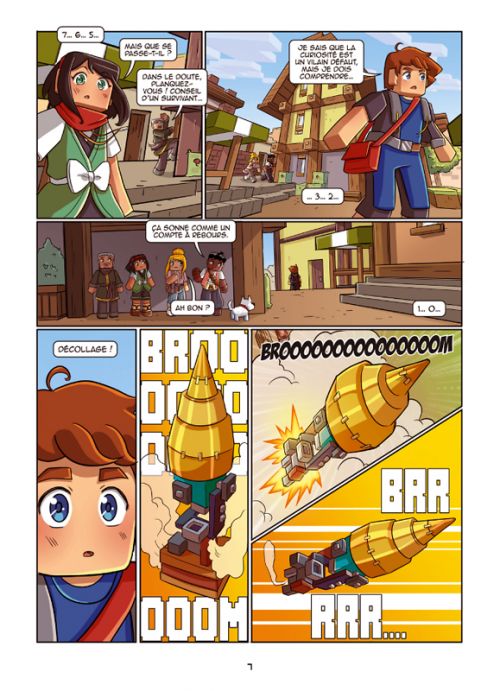 Les quatre amis de Lanniel n'ont jamais le temps de s'ennuyer. Jean-Christophe Derrien et Frigiel leur ont concocté une aventure haute en couleurs et en références à la culture populaire. D'ailleurs, cette fois, ils commencent dès le titre avec la « 20 000 cube sous la terre » en clin d'œil à 20 000 lieues sous les mers et Voyage au centre de la Terre de Jules Verne. Une double combinaison de romans fantastiques du XIXème siècle pour faire rêver les curieux. D'une certaine façon, YouTube est aujourd'hui l'équivalent des feuilletons papiers de l'époque. Tout comme le monde de <>Minecraft et ses produits dérivés, auxquels appartient cette adaptation BD. Une autre référence parlera à une autre génération avec Retour vers le futur (1985). Ces éléments donnent une autre dimension à la lecture et tentent ostensiblement d'élargir le public. Toutefois, le rythme est un chouya rapide. Pas trop le temps d'installer le retour des héros ; et même constat pour la fin. Arianna Sabella s'affirme quant à elle sur sa partition graphique en arrondissant les angles, en s'inspirant des mangas et dans les teintes vives. Cet ouvrage cohérent et amusant, bien que sous licence commandée, devrait ravir les jeunes fans.